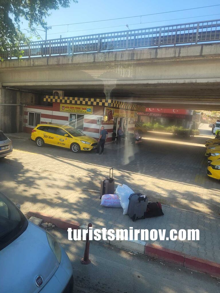 Недалеко от аэропорта, перед въездом в Анталию автобус съезжает с основной трассы и останавливается за кафе «Meşhur Aksu Şimsek Köfteci İsa«, напротив стоянки такси «Aksu Perge Taksi«, которая находится под основной дорогой. Вот я сделал несколько фото этой стоянки такси: